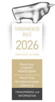 - In der Kategorie "Herausragende Vermögensverwaltung" wurde Merck Finck von Focus Money ausgezeichnet (Ausgabe 50/2024)