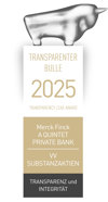 - In der Kategorie "Herausragende Vermögensverwaltung" wurde Merck Finck von Focus Money ausgezeichnet (Ausgabe 50/2024)